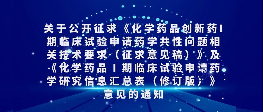 關(guān)于公開征求《化學(xué)藥品創(chuàng)新藥I期臨床試...