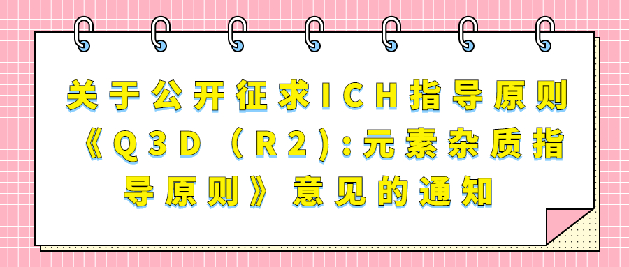 關(guān)于公開征求ICH指導(dǎo)原則《Q3D(R...